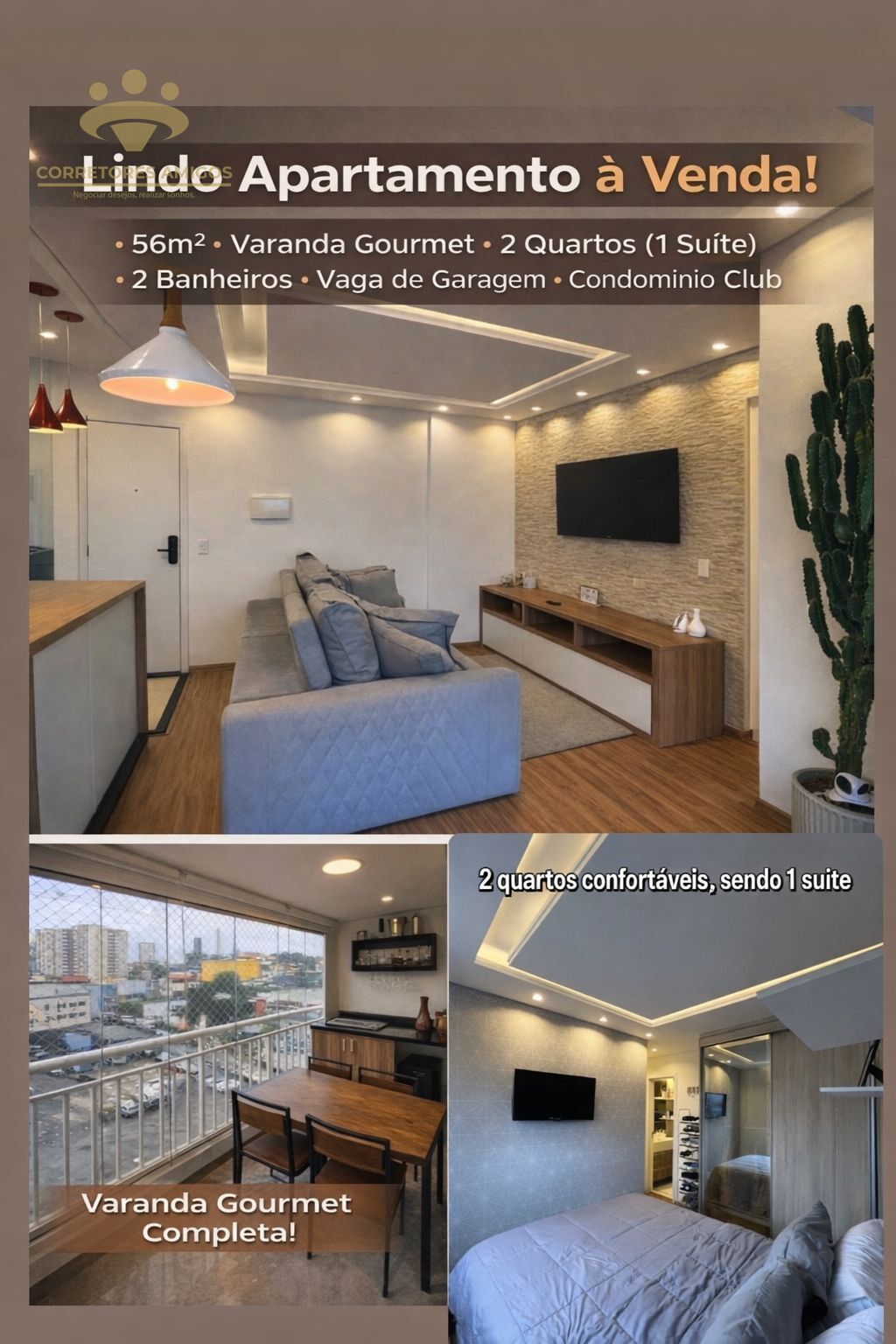 Este aconchegante imóvel de 2 Dormitórios, sendo 1 suíte e 1 Banheiro, possui uma Área Privativa de 56m², ideal para quem busca conforto e praticidade. Com uma planta bem distribuída, o apartamento se destaca pela sua luminosidade e atmosfera acolhedora.