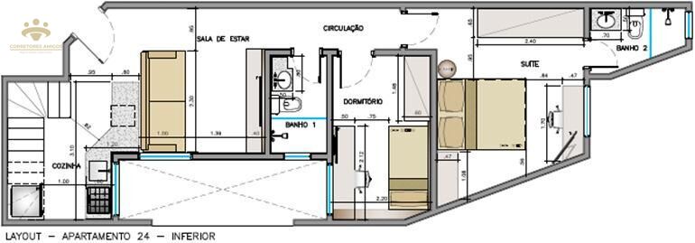 Este imóvel de 112,90m² se destaca por sua funcionalidade e beleza. A planta original conta com dois dormitórios, incluindo uma suíte aconchegante, e um banheiro social. Mas o grande diferencial é a cobertura privativa, espaçosa e perfeita para receber amigos e familiares. Na parte superior, você encontrará um lavabo adicional para maior comodidade, além de uma churrasqueira pronta para seus encontros de fim de semana. A sacada no andar inferior é o toque final para seus momentos de relaxamento. Para sua total conveniência, o condomínio ainda oferece elevador.