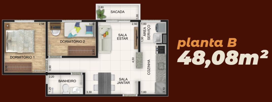 48,08 m²Previsão de Entrega