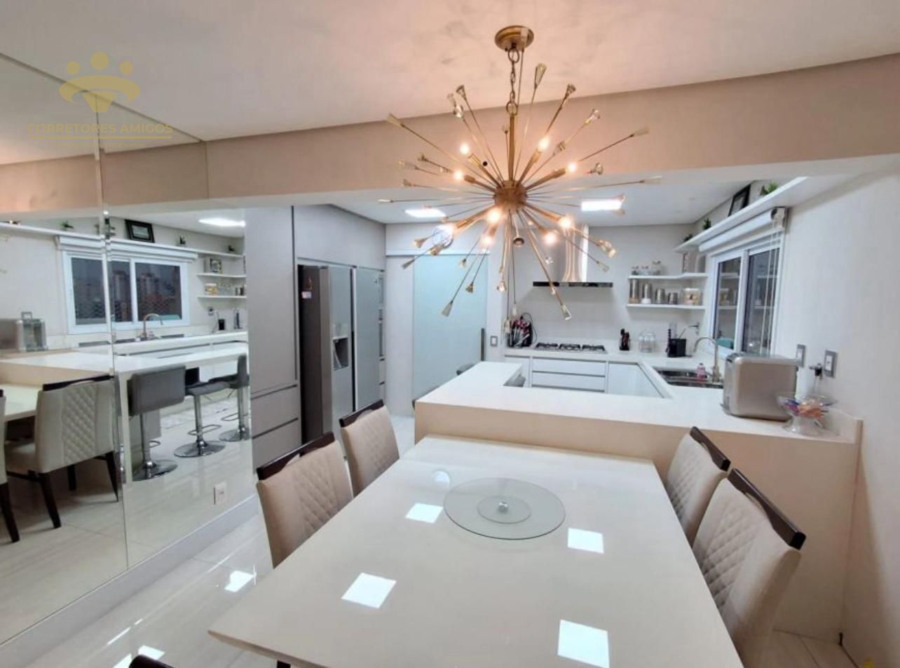 🍽️ A cozinha, equipada com móveis planejados e coifa, se integra com harmonia à sala de estar e jantar em dois ambientes, criando um espaço ideal para receber com charme e praticidade.