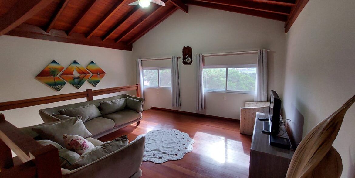 A casa conta com 04 dormitórios, sendo 1 suíte com móveis planejados, garantindo praticidade e aconchego. Os ambientes sociais são amplos e integrados: sala de jantar, estar e TV, além de um charmoso mezanino que amplia as possibilidades de uso — seja como escritório, sala íntima ou espaço de leitura.